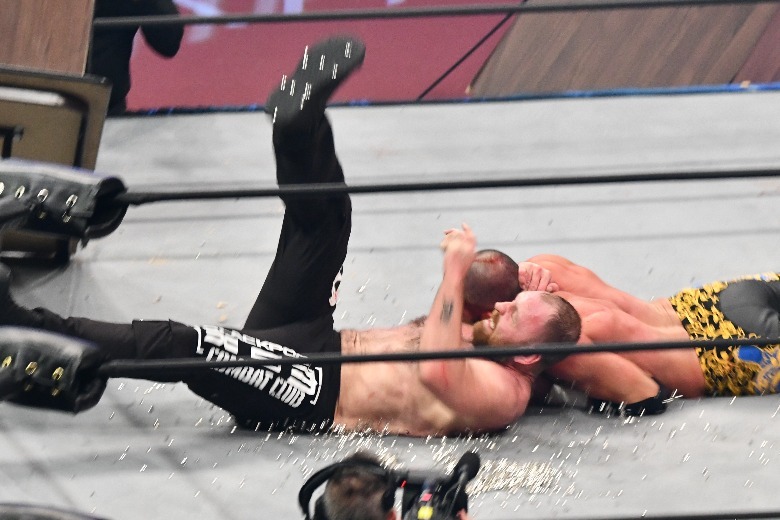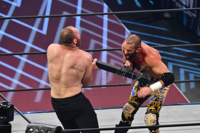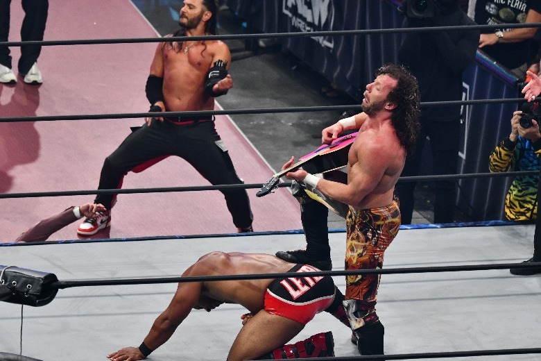 Up next in extreme action came a triple threat match between Trent Beretta, Penta El Zero Miedo and Jon Moxley. Fans of harcore wrestling got an absolute treat, with multiple table spots, barbed wire, trash cans and — of course — thumbtacks. They even got to see some brawling in the stands, as Moxley's fellow Blackpool Combat Club members Wheeler Yuta and Claudio Castagnoli brawled with Chuck Taylor and Orange Cassidy. In the end, Beretta picked up the W, stealing a pinfall on Penta after Moxley had laid him out with the Paradigm Shift.
