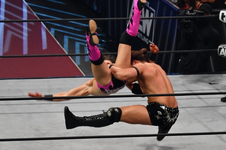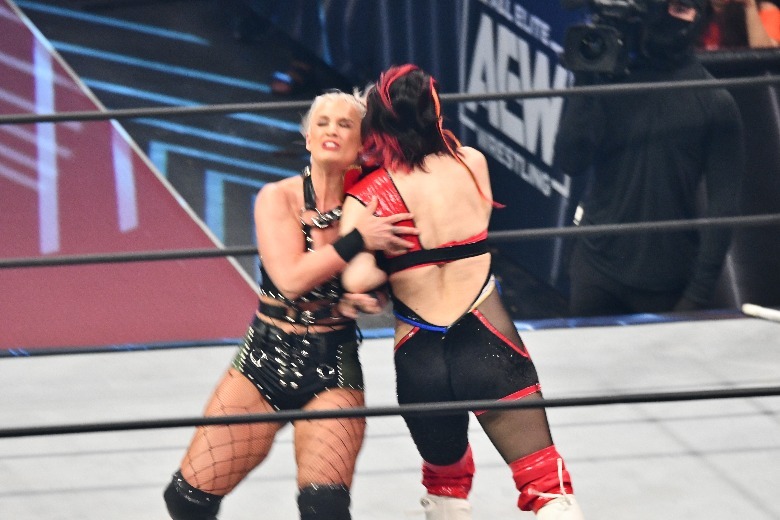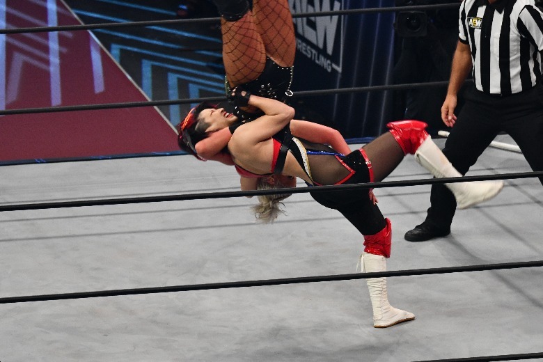 In the "AEW Dynamite" main event, Hikaru Shida took on Toni Storm for the AEW Women's World Championship and while the challenger keeps a kendo stick handy, the champ travels with her fellow Outcasts Saraya and Ruby Soho. Shida was more than happy to introduce the three to each other; when Storm's stablemates tossed the kendo stick into the ring, Shida considered using it on Storm, but instead nailed Soho and Saraya to avoid the loss by disqualification. It proved to be a smart decision, as she went on to win the match via pinfall and become your new AEW Women's World Champion.