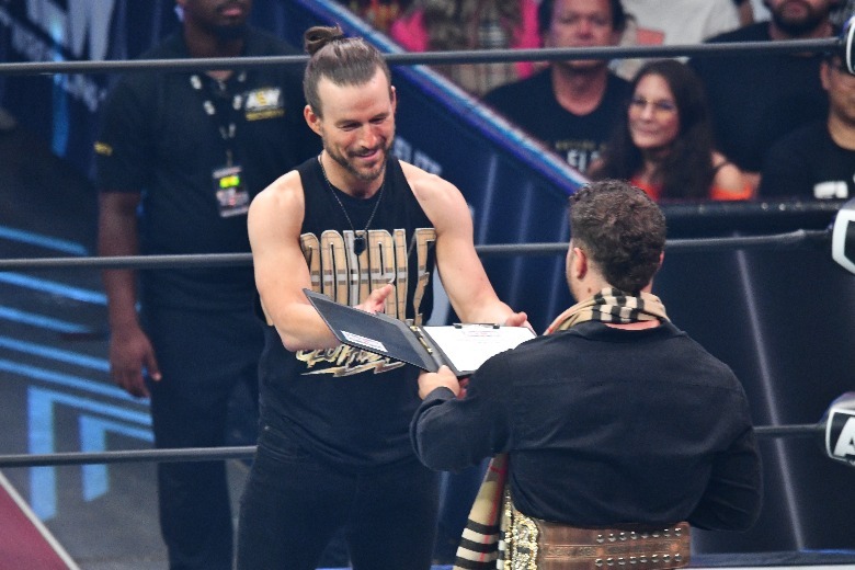 Unlikely fan favorite MJF came out next to discuss his redemption arc. He regaled the crowd about being bullied when he was younger and conceded his own unsavory character traits, but then invited out the man who helped him turn the corner: his new best friend, Adam Cole, bay bay! Cole expressed how proud he was of Max for his continued character growth, leading MJF to bring up the title shot he'd promised Cole. The champ then puled a swerve, saying Cole didn't deserve a title shot; he deserved the title shot, on the biggest stage in professional wrestling: AEW All In at Wembley. Just like that, with a contract signed, AEW's biggest PPV to date has a title match.